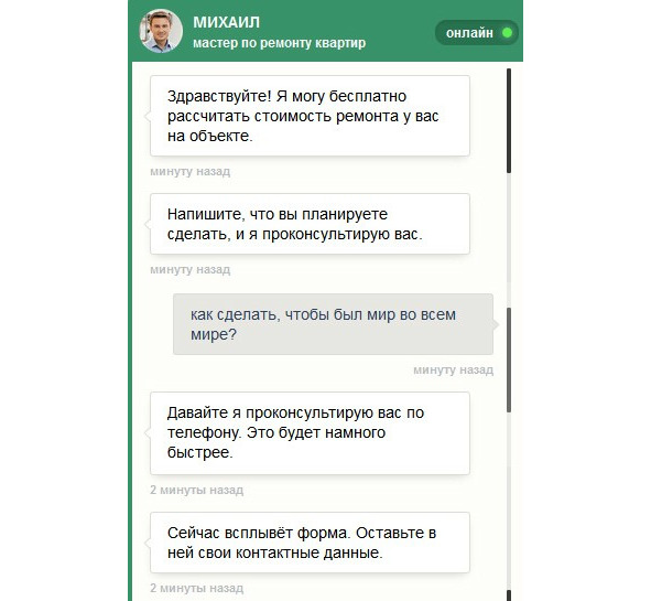 Если с callbak-виджетами главный нюанс был в настройках, то тут он скорее заключается в самом менеджере и подходе к работе. Дело в том, что многие владельцы сайтов используют роботов для ответа на вопросы и порой это выглядит не совсем логично: