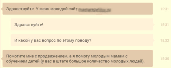 И вторая распространенная ситуация, это предложения сотрудничества по «выгодному» бартеру: