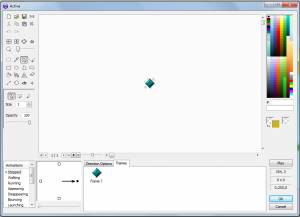 Это окно можно разбить на несколько условных частей. В левой части представлена своя панель инструментов, представляющая собой простейший графический редактор. В правой части мы видим цветовую палитру. В нижней части мы видим редактор анимаций. Давайте рассмотрим кнопки из левой части более детально.