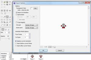 Откроем Import (Ctrl-O) – импортировать изображение или набор анимаций, укажем путь, а также дополнительные опции, как представлено на рисунке.