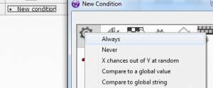 Кликнем снова на надпись New condition и выберем из выпадающего меню пункт Always («Всегда»):
