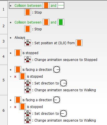 5: Если направление движения объекта вправо, при этом объект движется, направляем Диззи вправо, при этом выбираем анимацию ходьбы.
