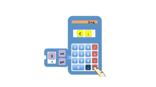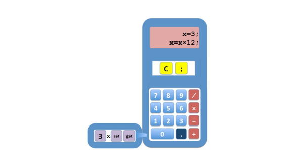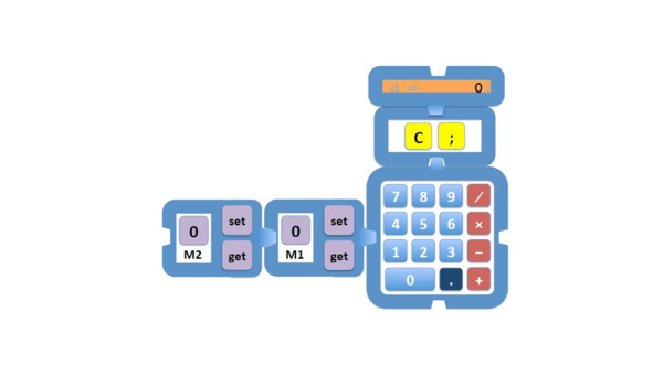 Мы можем рассматривать выражения в калькуляторе как законченные операции, считая, что дисплей также может считаться переменной, переменной с прямым вводом.