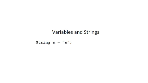 Теперь это объявление переменной для строки с именем s, которой мы присваиваем строку, состоящую из просто символа s.