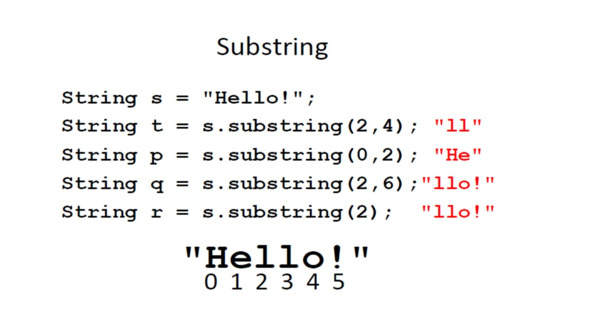 Таким образом, substring (2,4) означает, что мы извлекаем подстроку, которая начинается в позиции 2, L, и заканчивается в позиции до 4.