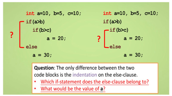 Для исследования проблемы else, давайте взглянем на эти два блока кода.