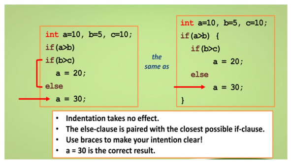 В Java, else выражение соотносится с ближайшим возможным if выражением.