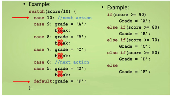 В то время как if выражение позволяет выбрать из двух возможных путей, switch выражение позволяет более двух путей выполнения.