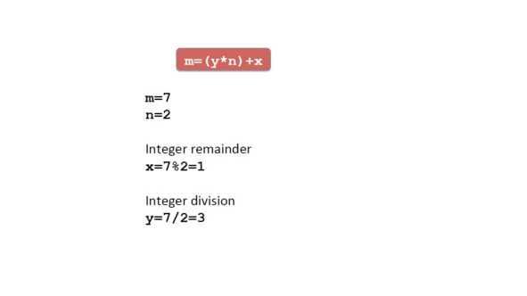 Давайте представим, что мы хотим разделить целое число m на другое целое число n.