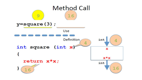 Здесь мы видим, как использовать глобальную переменную x и параметр y в теле метода.