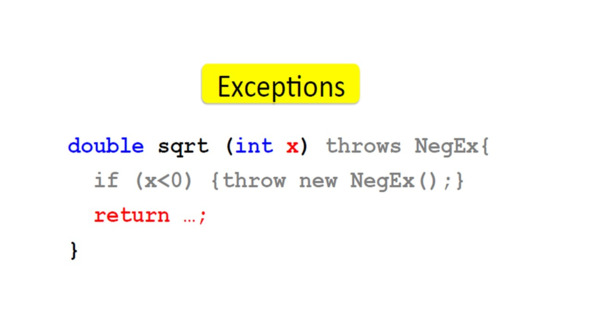 Когда мы говорили о том, что мы можем сделать в случае метода, который не определен для всех возможных входных значений, мы сказали, что мы можем запрограммировать, что нужно сделать в исключительной ситуации.