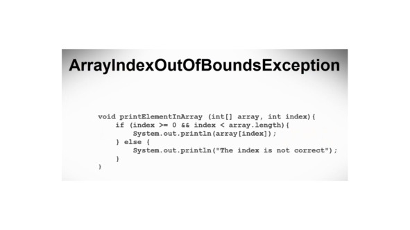 Другим распространенным исключением является ArrayIndexOutOfBoundsException.
