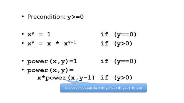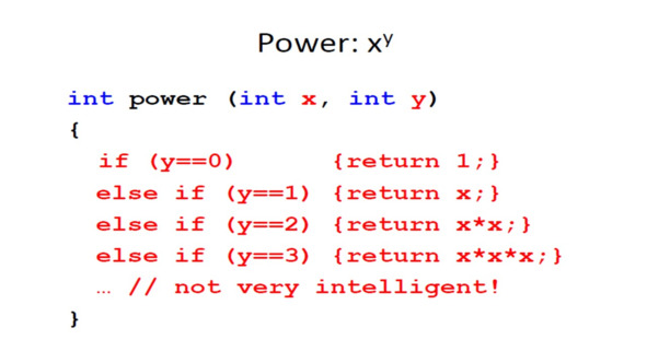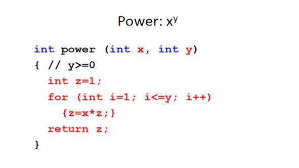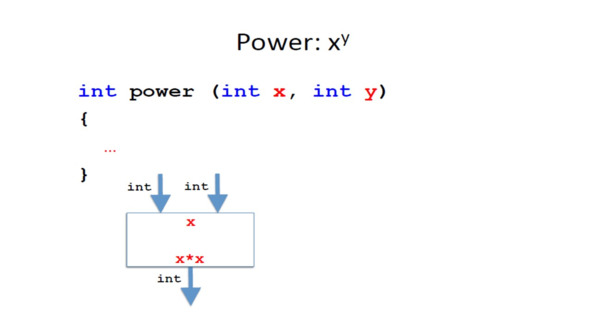 Мы хотим определить метод, который, учитывая базу x и показатель y, вычисляет x в степени y.