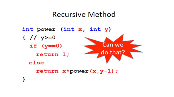 Таким образом, тот же метод, который мы определили с помощью цикла, может быть определен с помощью рекурсии.
