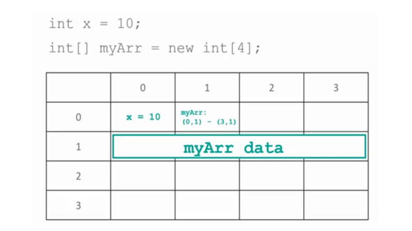 Когда вы создаете новую переменную типа объект, например, для массива, компьютер выделяет область памяти для ссылки на то, где этот код на самом деле собирается хранить эти данные.