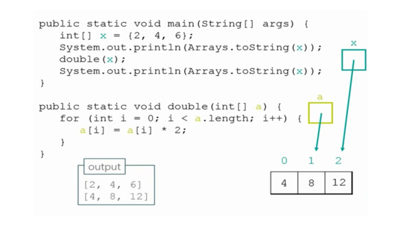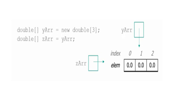 Как упоминалось ранее, когда массив создан, его элементы инициализируются нулем 0 такого же типа, что и базовый тип массива.
