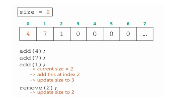 При этом, он добавляет функциональность, позволяющую ему расти и уменьшаться и вставлять элемент в середину без необходимости делать какие-либо изменения.