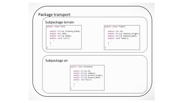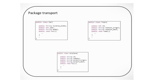 И он может быть частью пакета с именем transport, который также может содержать другие классы, такие как самолет или поезд.