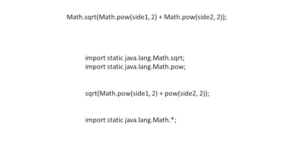 При этом имена методов sqrt и pow становятся видимыми благодаря оператору статического импорта.