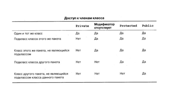 Теперь, когда мы узнали, что классы группируются в пакеты, и мы знаем, что методы и поля класса могут быть публичными и приватными, пора сказать, что методы и поля класса также могут быть защищенными, это ключевое слово protected, и приватными в пакете, это отсутствие всякого ключевого слова.