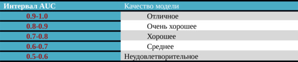 В литературе иногда приводится следующая экспертная шкала для значений AUC, по которой можно судить о качестве модели: