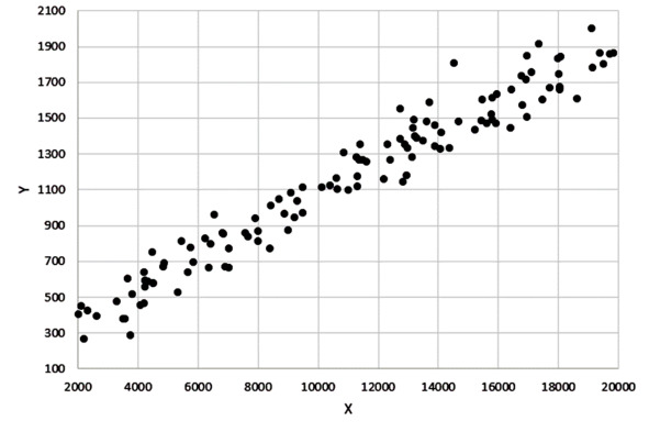 Если рассматривать картину в целом, то здесь будет какая-то общая тенденция (прямая или кривая линия), а в каждом конкретном случае к ней добавляется случайный разброс, непредсказуемость, погрешность. По реальным данным можно оценить наличие (силу, степень, тесноту) взаимосвязи и даже построить уравнение такой зависимости. Такое уравнение даст нам только ориентир, среднюю картину и позволит делать приблизительные прогнозы.