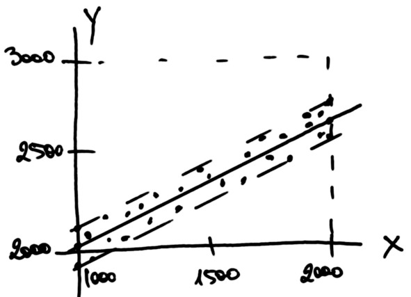 Нам предстоит изобразить расположение нашей линии и форму диаграммы разброса – в самых общих чертах.