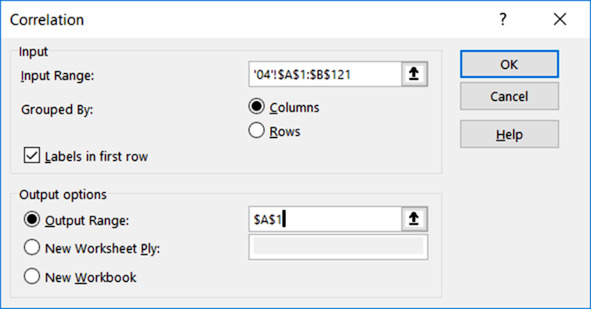 Данные – Анализ – Анализ данных – Корреляция.