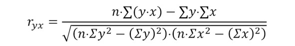 Вычислим коэффициент линейной корреляции вручную с помощью формул Excel.