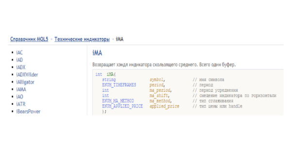 Стандартная функция для индикатора скользящего среднего это функция iMA.