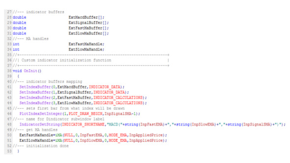 И в индикаторе MACD хэндлы индикатора скользящего среднего получаются с помощью вызова функции iMA в функции OnInit ().
