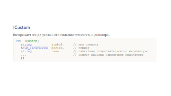 Для вызова того индикатора воспользуемся функцией iCustom.