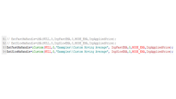 В функции OnInit () индикатора MACD изменим код, где для получения хэндлов вместо стандартной функции, используем функцию iCustom.