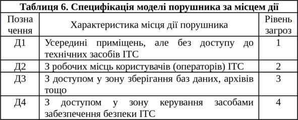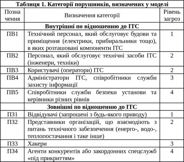 – категорії персоналу, користувачів ІТС та сторонніх осіб, із числа яких може бути порушник;