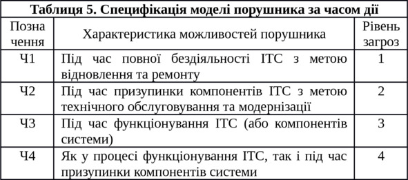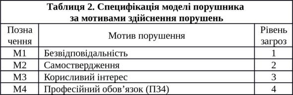 – можливі цілі порушника та їх градація за ступенями небезпечності для ІТС та інформації, що потребує захисту;
