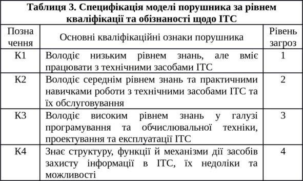 Припускається, що в своєму рівні порушник – це фахівець вищої кваліфікації, який має повну інформацію про ІТС і засоби захисту. Така класифікація порушників є корисною для використання в процесі оцінки ризиків, аналізу вразливості системи, ефективності існуючих і планових заходів захисту.