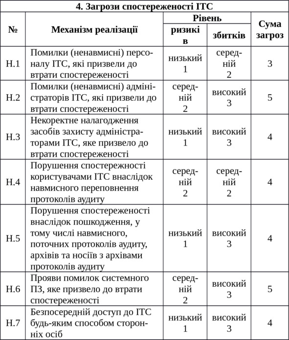 – спостереженості ІТС – відмова в ідентифікації, автентифікації та реєстрації небезпечних дій.