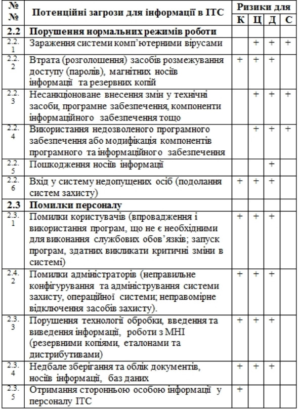 – порушення режимів функціонування ІТС (обладнання і ПЗ);