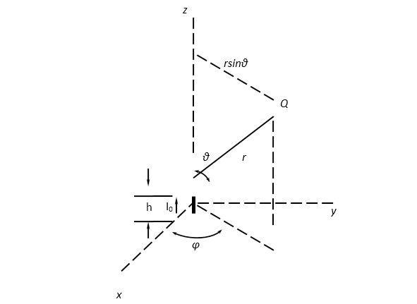 Длину элемента h будем считать очень малой по сравнению с длиной волны.