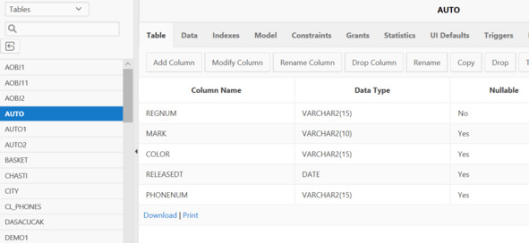 • TABLE – структура избранной таблицы;