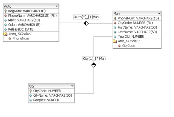 Первая таблица MAN содержит сведения о людях, которые приобрели машины.