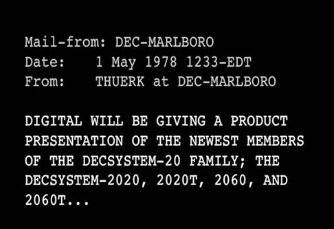 1 мая 1978 года Гэри Туэрк разослал через компьютерную сеть ARPANET по 400 адресам письмо, в котором сообщалось о новой продукции компании и о том, что 3 мая 1978 года состоится выставка, где эту технику можно будет увидеть в действии. Он рассуждал правильно: практически все адресаты отреагировали на полученное письмо. Количество людей на выставке превзошло все ожидания. Уровень продаж превысил 13 миллионов долларов. При этом затраты на рекламу оказались гораздо меньшими, чем если бы это пришлось делать по почте, рассылая тем же 400 адресатам буклеты и письма. За электронную же почту вообще платить не пришлось!