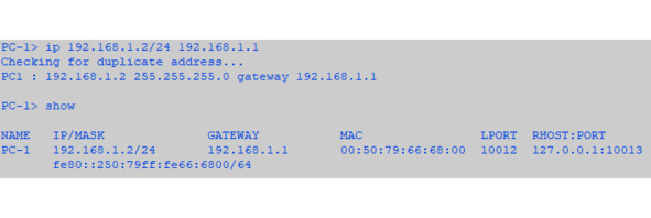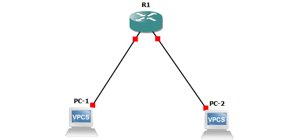 Добавим в сеть хост VirtualPC Simulator. Данный способ широко используется, если вам нужна простая модель компьютера в топологии, например, для проверки пинга. Виртуальный хост практически не затрачивает ресурсы (каждый VPCS требует всего 2 мегабайта оперативной памяти!) компьютера и очень просто разворачивается. Работа с ним ведется с помощью консоли по средствам ввода команд.