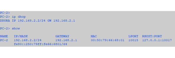 Посмотрим, какой IP-адрес был присвоен автоматически компьютеру PC-2 (рисунок 37) и проведем пинг до основного шлюза и пинг до PC-1 (рисунок 38).