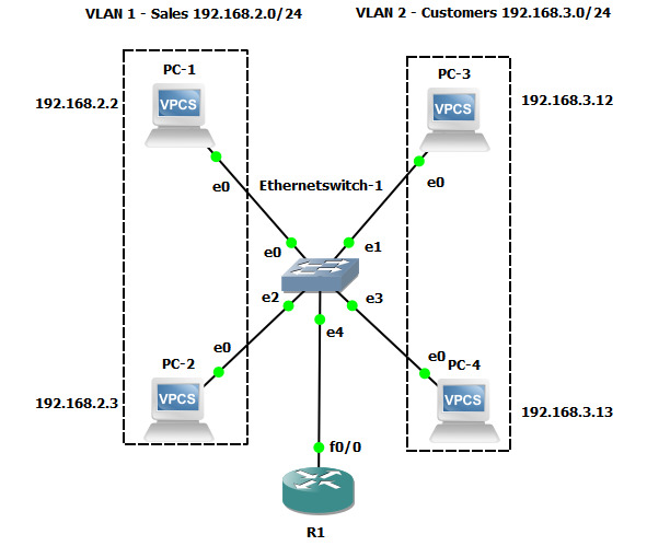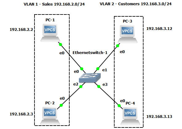 Включим в сеть коммутаторы. В GNS3 они имеют ограниченный функционал из-за сложности эмуляции, так как в них используются сложные микросхемы.