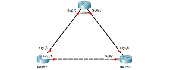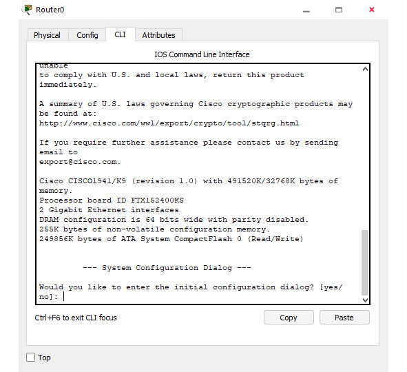 На маршрутизаторах выбираем для коннекта любой из доступных интерфейсов на ваш выбор. Пример топологии приведен на рисунке 54. Для отображения Cisco IOS и выполнения настроек на устройстве следует один раз нажать на требуемое устройство (рисунок 55). Для переименования устройства на топологии следует нажать на его имя (рисунок 56).