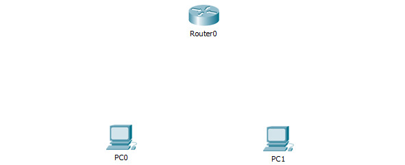 Добавление хостов в нашу сеть происходит таким же способом, как и добавление маршрутизаторов. В Панели с группами конечных устройств и линий связи выбираем оконечные устройства, среди которых находим и выставляем два компьютера. Так же между ними ставим один маршрутизатор (Рисунок 61). Компьютеры соединяем с маршрутизатором аналогичным способом, как и в прошлый раз. Вид нашей топологии представлен на рисунке 62.