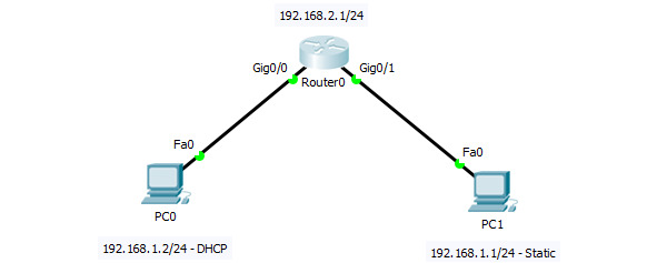 Проведем настройку для интерфейса маршрутизатора, подключенного к PC1: