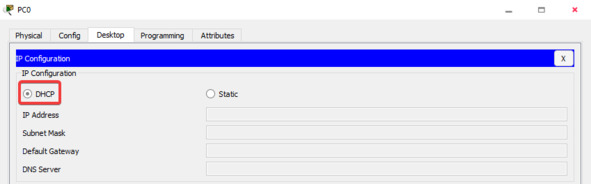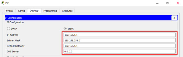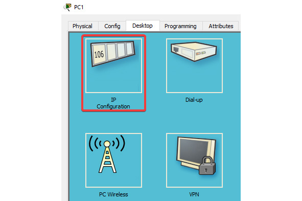 Для статического предоставления IPv4-адресов для компьютера достаточно один раз нажать на требуемое оконечное устройство, перейти во вкладку Desktop и выбрать IP Configuration (Рисунок 63). Настройку IPv4-адреса выполняем согласно нашей топологии (Рисунок 64).