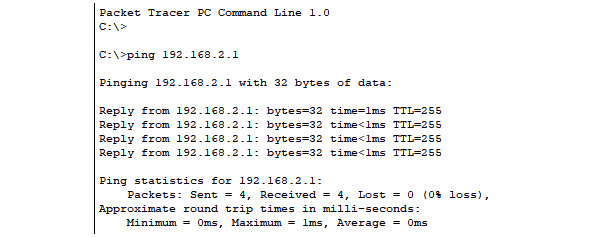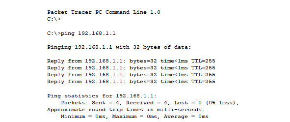 Выполним проверку подключения компьютеров с помощью пинга. Для этого на каждом компьютере, во вкладке Desktop, выберем Command Prompt и воспользуемся командой ping (рисунок 67 – 69).